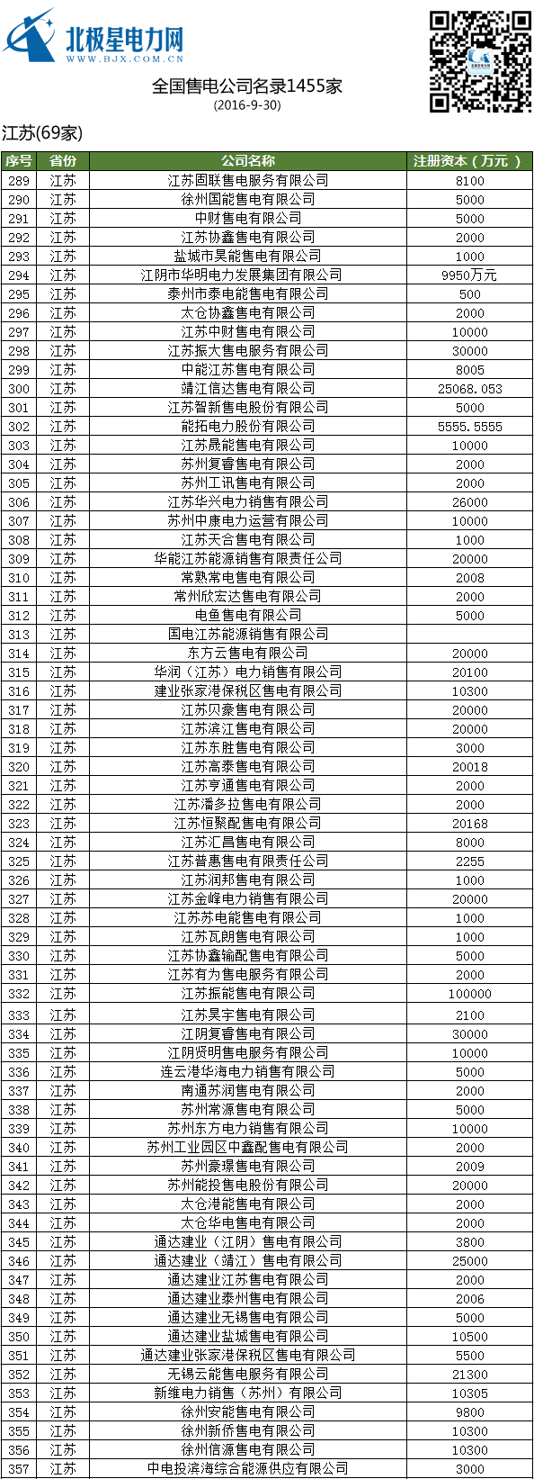 全國售電公司名錄(1455家)