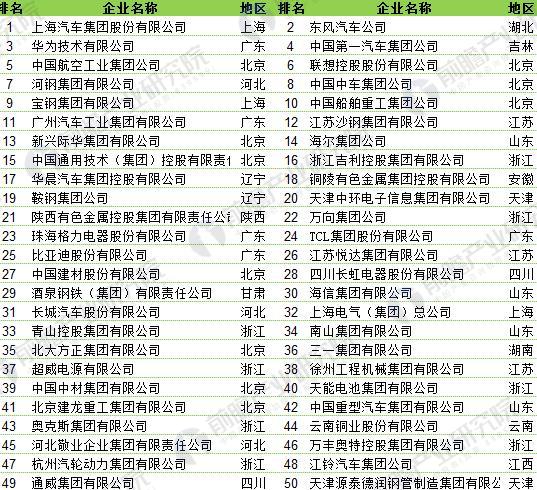 圖表1:2017《中國裝備制造業(yè)100強(qiáng)》上榜企業(yè)(1-50名)