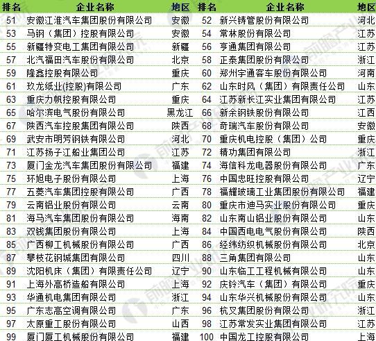 圖表2:2017《中國裝備制造業(yè)100強(qiáng)》上榜企業(yè)(51-100名)