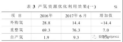經(jīng)過氫氣資源優(yōu)化,至2017年6月,公司外購氫氣比例降至14.4%,具體見表3,扣除裝置運(yùn)行成本,每季度增加效益約1620萬元。