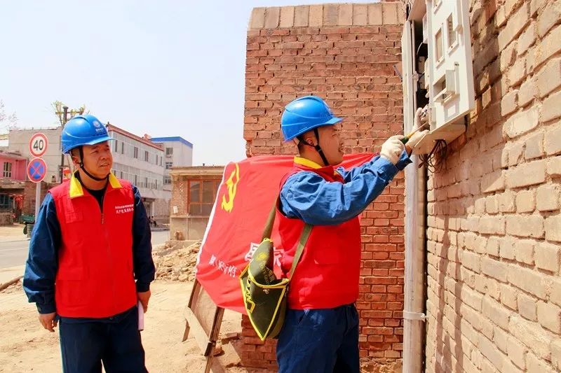 山西忻州忻府區(qū)供電公司黨員服務(wù)隊隊員在東街村東大街古樓改造現(xiàn)場為拆遷戶拆除電表。( 張青松 )