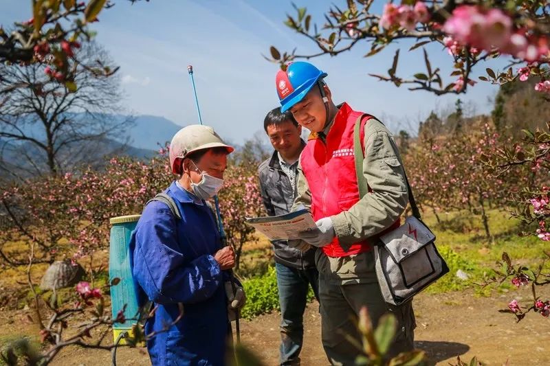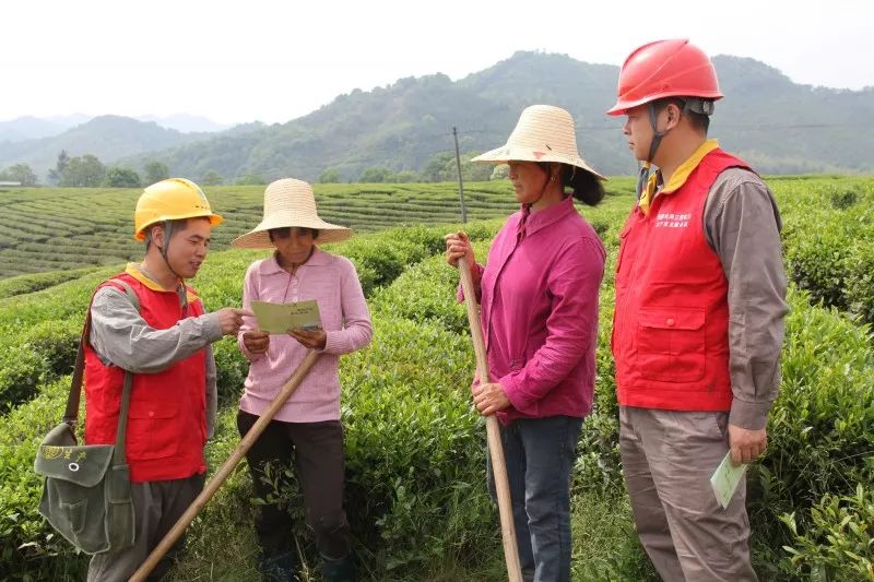 湖北宜昌長(zhǎng)陽(yáng)縣供電公司黨員服務(wù)隊(duì)深入田間地頭向種植戶介紹安全用電和節(jié)約用電知識(shí)。(李萍)