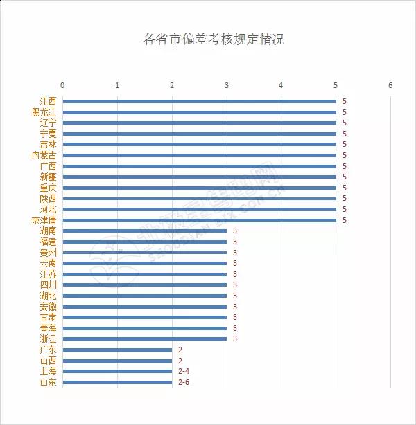 進(jìn)入2018年,很多省份發(fā)布了電力交易規(guī)則,并對偏差考核情況也做出調(diào)整,截至目前,從已公布偏差考核范圍的27個省市來看,5%的偏差考核數(shù)量最大,全國有12個省區(qū)市實行,其次為實行3%以內(nèi)免考核,為11個省市。廣東和山西實行2%免考核,國際化金融之都上海雖然雖然還未放開售電公司的注冊,但偏差考核已確定了±4%-±2%,(注:考慮到7月至9月為暑熱季節(jié),用電量比較高,偏差考核調(diào)整為±4%,其他月份為±2%),而用電大省實行的是6%-2%的彈性范圍。
