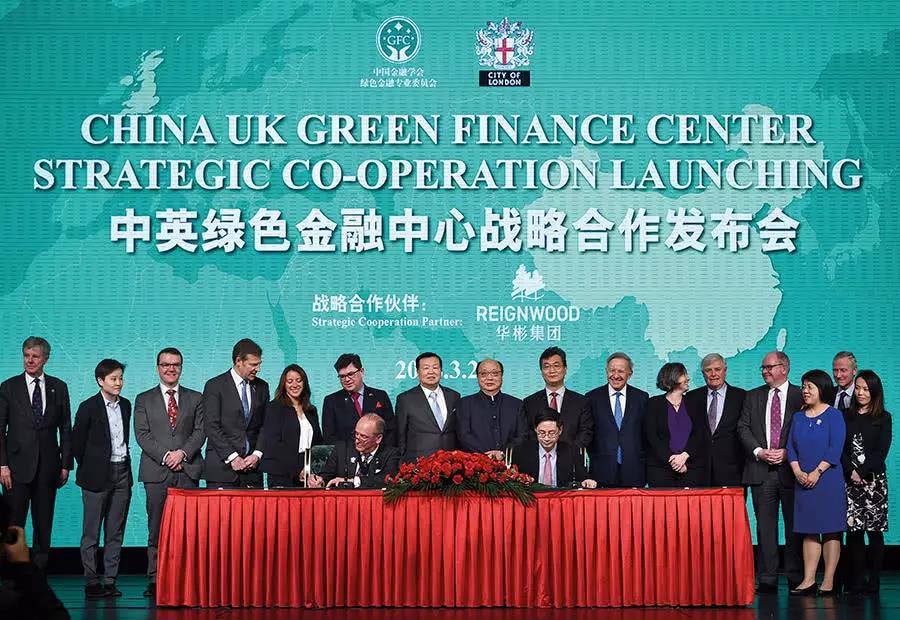 (2018年3月26日,中英綠色金融中心戰(zhàn)略合作發(fā)布會(huì)暨啟動(dòng)儀式在北京舉行。圖/視覺中國)