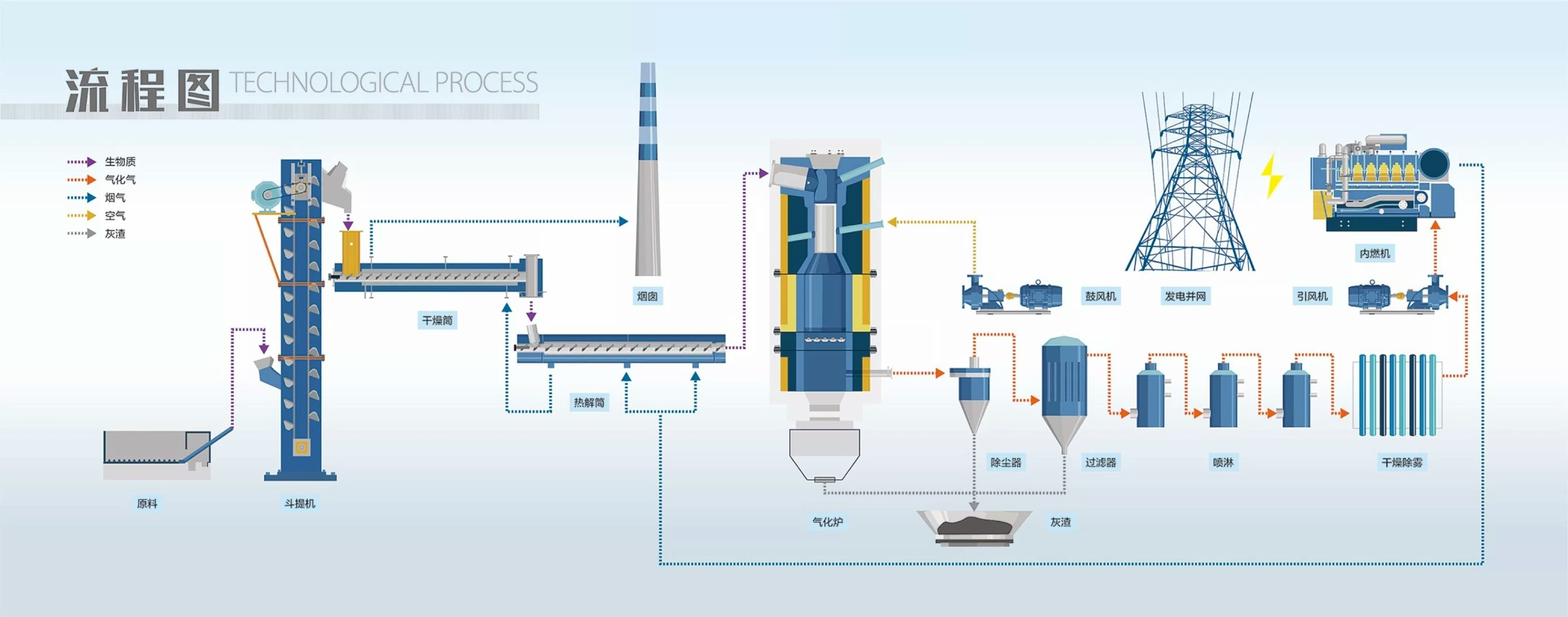 生物質(zhì)高效氣化爐運(yùn)行流程圖