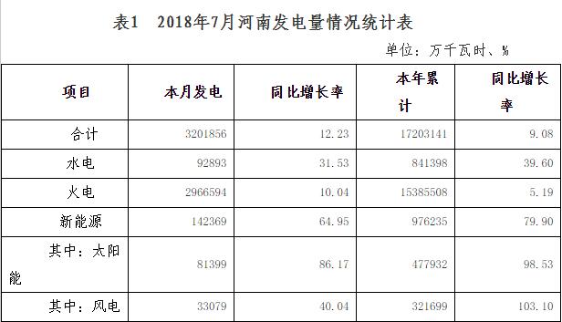 2018年7月,河南全省全社會用電量357 80億千瓦時,同比增長9 08%;累計用電量1978 96億千瓦時,同比增長7 46%。全省發(fā)電量320 19億千瓦時,