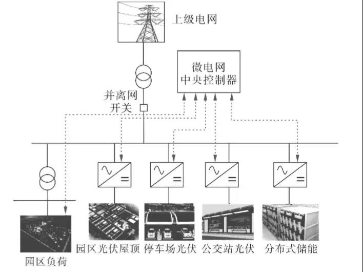 圖1產(chǎn)業(yè)園區(qū)典型光儲微電網(wǎng)系統(tǒng)的形態(tài)示意圖