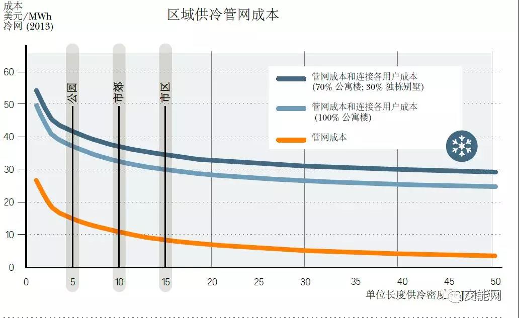 區(qū)域供暖和供冷系統(tǒng)在全球許多地區(qū)都已經(jīng)開發(fā)了多年。在許多場(chǎng)景下,區(qū)域能源系統(tǒng)具有很高的成本競(jìng)爭(zhēng)力(見下圖,來(lái)源UNEP)。通常這些系統(tǒng)使用的能源都來(lái)自工業(yè)的余熱/冷。然而,無(wú)可否認(rèn)的是,與可再生電力發(fā)電資產(chǎn)一樣,區(qū)域能源通常具有較高的資本性指出(CAPEX)和相對(duì)較低的營(yíng)業(yè)性支出(OPEX)。也就是說(shuō)城市區(qū)域能源系統(tǒng)的回收期比較長(zhǎng)。