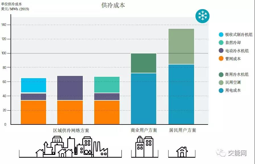 區(qū)域供暖和供冷系統(tǒng)在全球許多地區(qū)都已經(jīng)開發(fā)了多年。在許多場(chǎng)景下,區(qū)域能源系統(tǒng)具有很高的成本競(jìng)爭(zhēng)力(見下圖,來(lái)源UNEP)。通常這些系統(tǒng)使