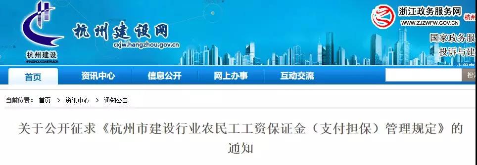 日前,杭州市城建委發(fā)布了公開征求《杭州市建設(shè)行業(yè)農(nóng)民工工資保證金(支付擔(dān)保)管理規(guī)定》的通知。
