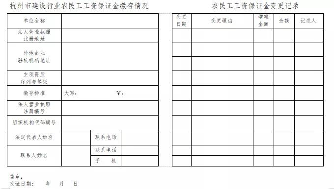 杭州市建設(shè)行業(yè)農(nóng)民工工資保證金繳存信息表