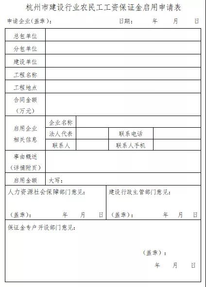 6.杭州市建設(shè)行業(yè)農(nóng)民工工資保證金啟用申請(qǐng)表
