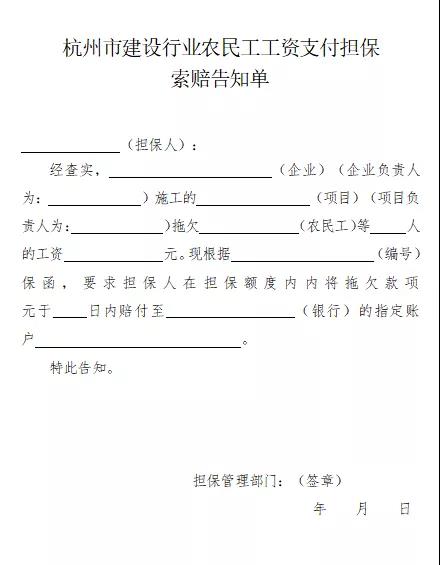 8.杭州市建設(shè)行業(yè)農(nóng)民工工資支付擔(dān)保索賠告知單