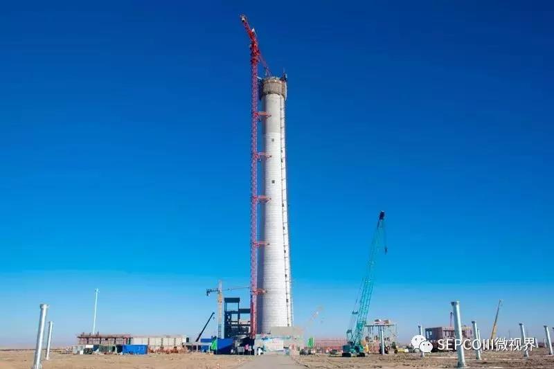 11月21魯能海西州50兆瓦塔式熔鹽太陽能熱發(fā)電項(xiàng)目吸熱塔到頂,該塔是魯能海西州50兆瓦塔式熔鹽太陽能熱發(fā)電項(xiàng)目的吸熱塔是整個(gè)項(xiàng)目最為核心的建筑基礎(chǔ)直徑36.4米,塔頂直徑14.7米,塔身總高188.1米。