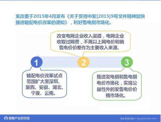 據(jù)媒體報(bào)道,電力體制改革6個(gè)配套文件即將出臺(tái),售電側(cè)改革試點(diǎn)進(jìn)入倒計(jì)時(shí)。新電改會(huì)帶來很多巨大商機(jī),比如售電制改革,鼓勵(lì)社會(huì)資本市場(chǎng)進(jìn)入,包括配電領(lǐng)域混合所有制改革。所以從售電公司角度看,更多的關(guān)注電