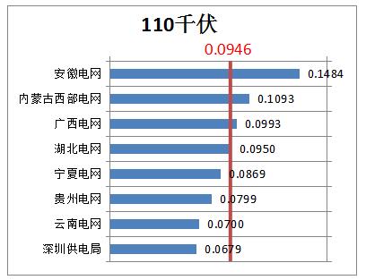 8省市1-220千伏的平均輸配電價為0.1196元/千瓦時,其中,安徽最高為0.1572元/千瓦時,寧夏最低為0.0994元/千瓦時。詳情如下:
