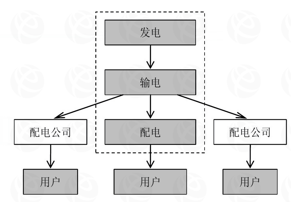 我們知道,電力工業(yè)由發(fā)電、輸電、配電和售電(以前叫供電)四個(gè)必不可少的環(huán)節(jié)構(gòu)成,電力市場的結(jié)構(gòu)就是這四個(gè)環(huán)節(jié)以及用電用戶之間的相互關(guān)系。在電改之前,電力市場普遍采用的是縱向一體的垂直壟斷結(jié)構(gòu),一個(gè)地區(qū)只有一個(gè)電力公司負(fù)責(zé)發(fā)電、輸電、配電和售電。這種情況下,用戶是沒有選擇余地的,電力公司擁有電廠、電網(wǎng)的完全信息。它的