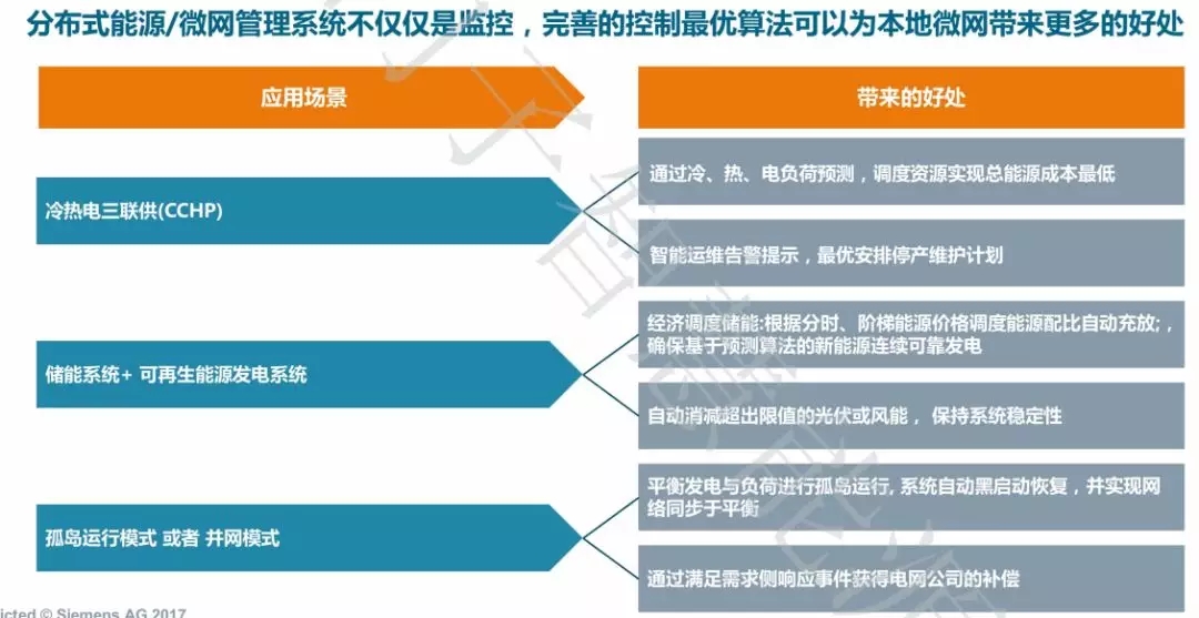 上圖是西門子聚焦的分布式應(yīng)用市場,主要關(guān)注居民、商業(yè)建筑、園區(qū)、工業(yè)和集中供電/熱,容量大小從100千瓦到100兆瓦不等。