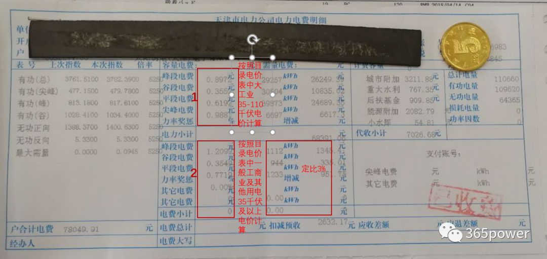 這是一張?zhí)旖?5-110千伏大工業(yè)用戶的電費(fèi)單,首先我們看一下天津銷售電價(jià)表