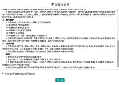 打開注冊須知后,需完整閱讀平臺使用協(xié)議后,勾選“我已閱讀注冊須知并同意條款”,并點擊下一步。