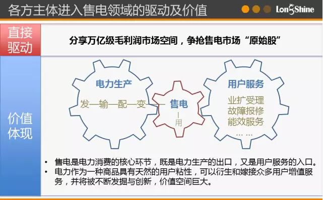 售電側(cè)放開是當(dāng)前的熱門話題,但大多數(shù)觀點仍停留在發(fā)展、驅(qū)動、定位、業(yè)務(wù)邊界等概念上。瞄準(zhǔn)萬億售電市場蛋糕,全國已經(jīng)有數(shù)十家企業(yè)注冊售電經(jīng)營,一旦牌照發(fā)放,誰最先讓實操落地,誰就能占得先機。作為一家
