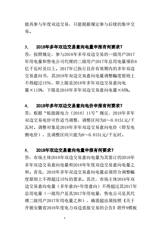 安徽省電力直接交易有關(guān)政策問答:2018年多年雙邊交易規(guī)模不超過391億千瓦時