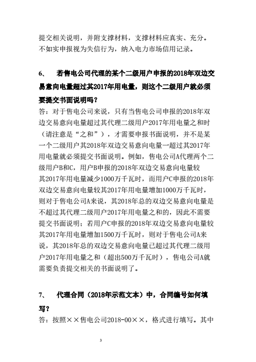 按照規(guī)定,參與2018年多年雙邊交易的一級用戶2017年用電量和售電公司代理的二級用戶2017年總用電量須在6億千瓦時及以上。2017年已執(zhí)行且在有效期內(nèi)的多年雙邊交易意向書,其2018年雙邊交易意向電量調(diào)整幅度原則上不得超過15%,