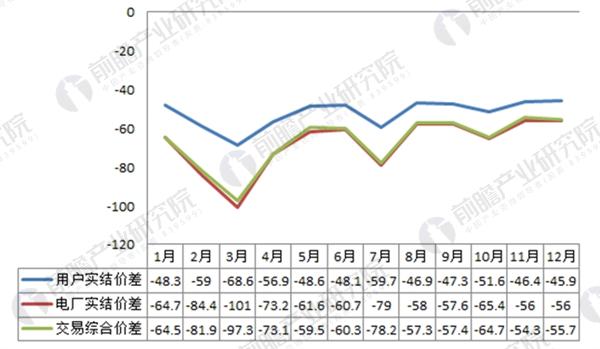 二、交易市場(chǎng):2017年成交量電量1156.6億千瓦時(shí)平均價(jià)差為-65.7厘/千瓦時(shí)