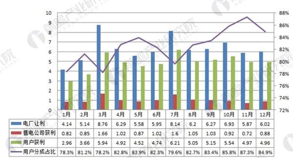 圖表10:2017年廣東電力市場(chǎng)用戶(hù)側(cè)獲利情況(單位:億元,%)