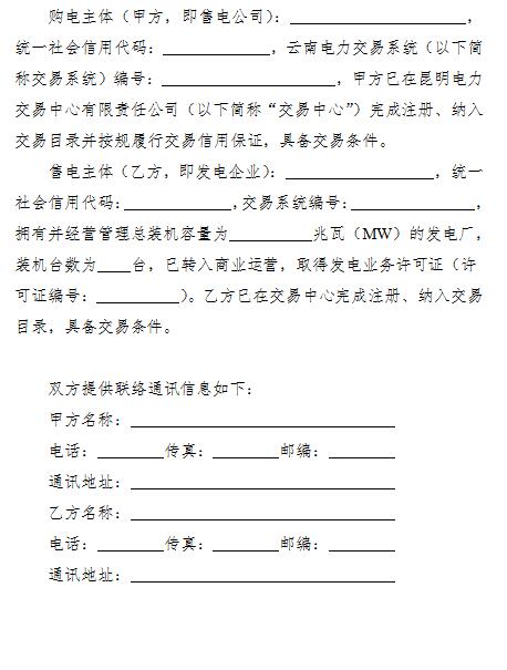 云南2019年年度雙邊協(xié)商交易合同(參考文本)發(fā)布