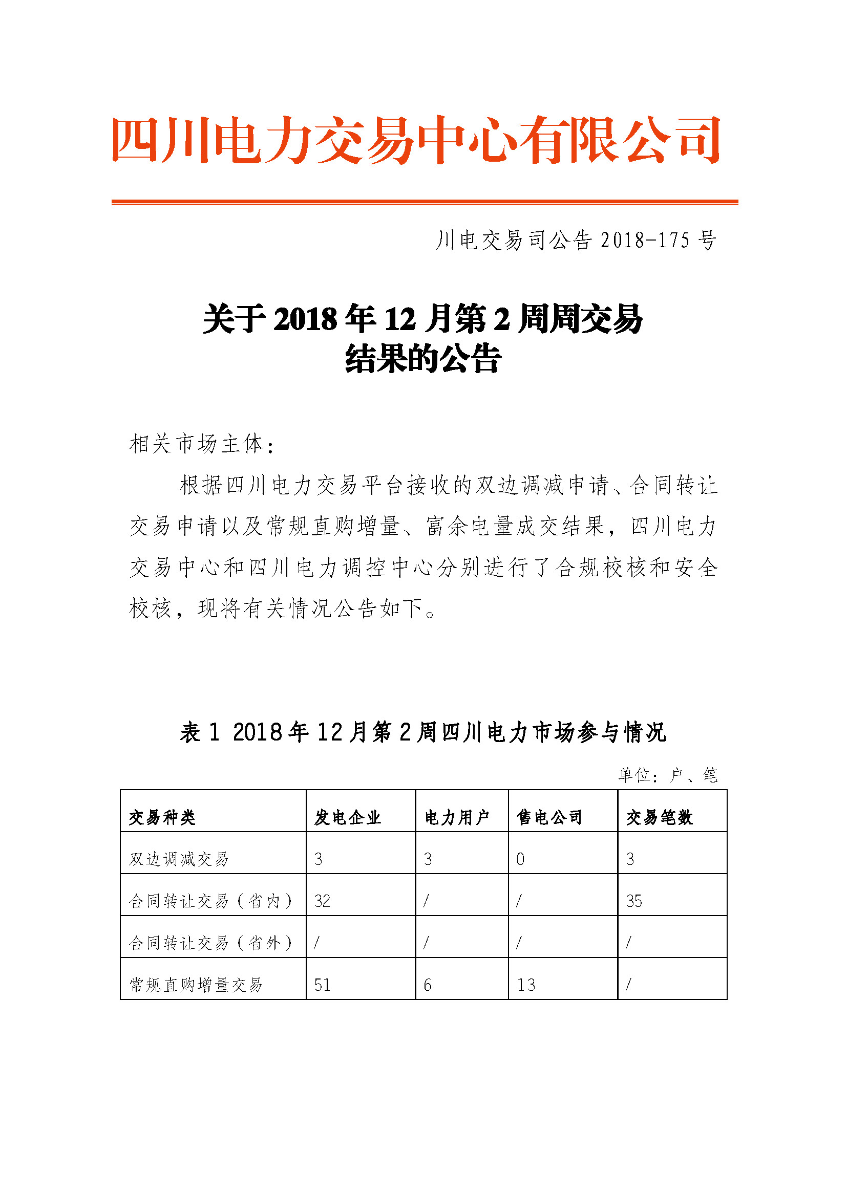 四川2018年12月第2周周交易:合同轉(zhuǎn)讓交易(省內(nèi))成交電量15.3萬(wàn)兆瓦時(shí)