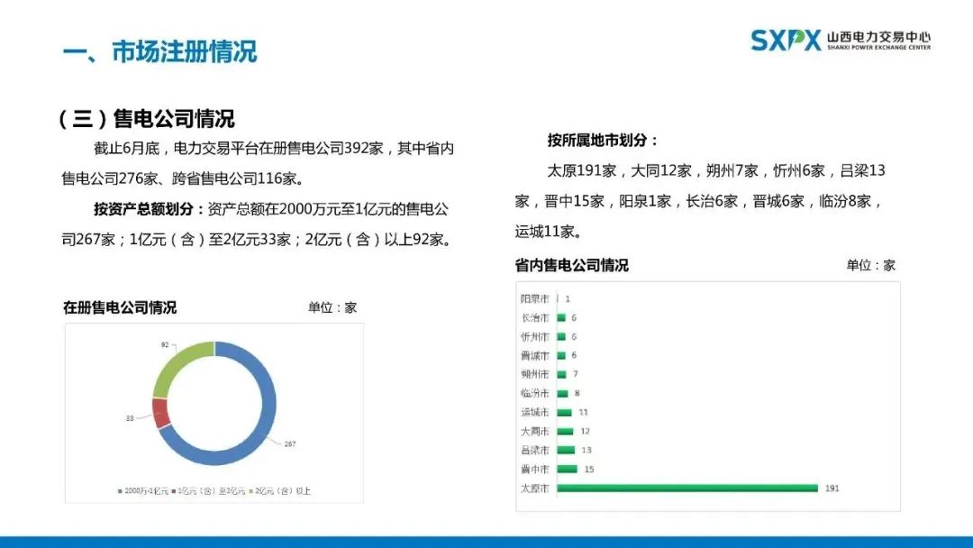 近日山西電力交易中心公布2023年二季度山西電力市場信息。截止6月底交易平臺在冊市場主體14475家其中,發(fā)電企業(yè)539家,售電公司392家,電力