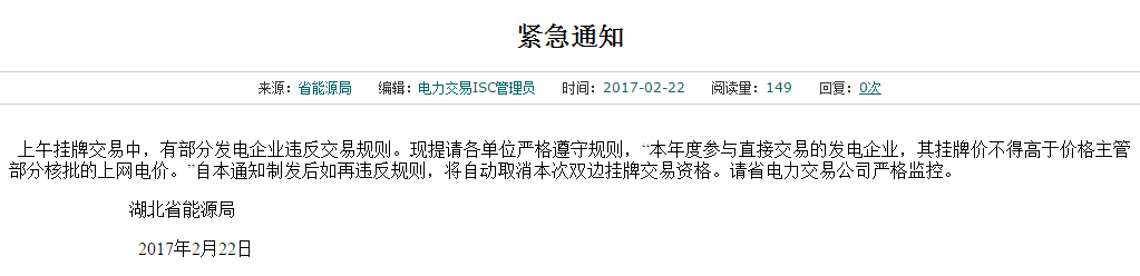下邊是湖北發(fā)改委對(duì)此次直接交易事件的報(bào)道。