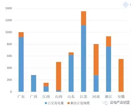 參與市場9省情況,如下圖,從表中可以看到:不到半年時(shí)間,已開展年度交易省份的剩余市場電量已經(jīng)很少。