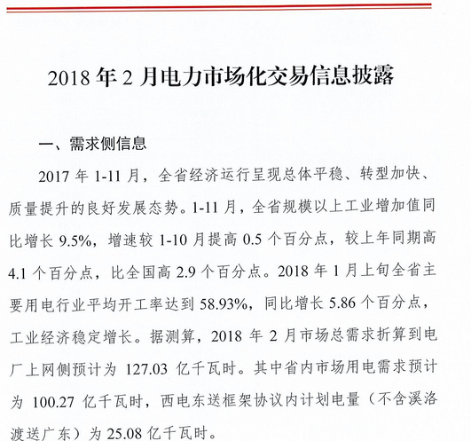 云南2018年2月電力市場化交易信息披露:2月份省內(nèi)市場可競價電量約58億千瓦時