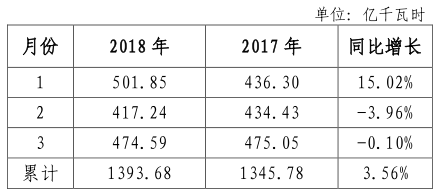 2018 年一季度,全省全社會用電量完成 1393.68 億千瓦時,同比增長 3.56%。