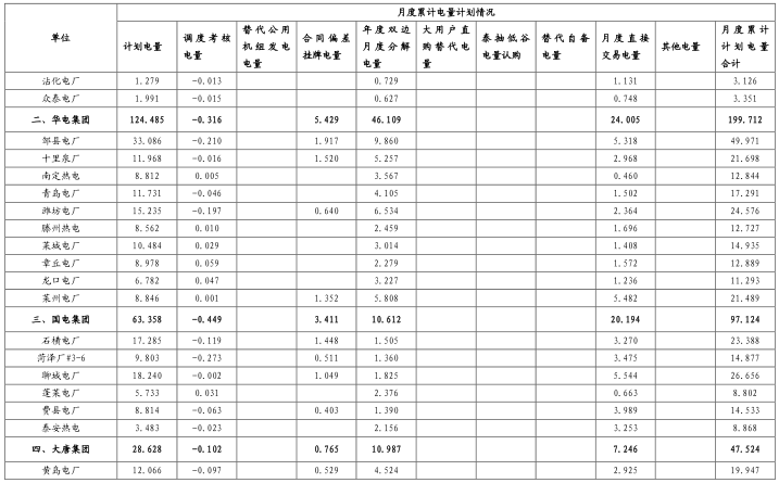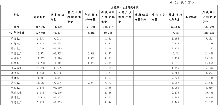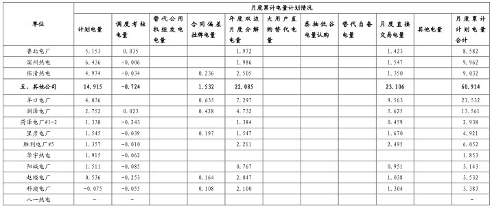 (二)發(fā)電量計劃安排情況