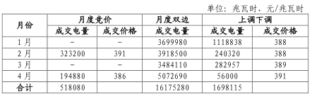 ⑵ 月度直接 交易情況:根據(jù)山東省電力直接交易工作安排,山東電力交易中心組織開展了山東省 2018 年月度交易及上調(diào)下調(diào)交易。完成2月、4月電力直接交易(集中競價),成交電量5.18億千瓦時;完成 1-4 月電力直接交易(雙邊協(xié)商),成交電量 161.75億千瓦時;完成 4 批次省內(nèi)中長期交易合同偏差電量預(yù)掛牌交易,成交電量 16.98 億千瓦時。交易結(jié)果詳見“山東電力交易中心信息發(fā)布網(wǎng)站”(網(wǎng)址:http://pmos.sd.sgcc.com.cn)。