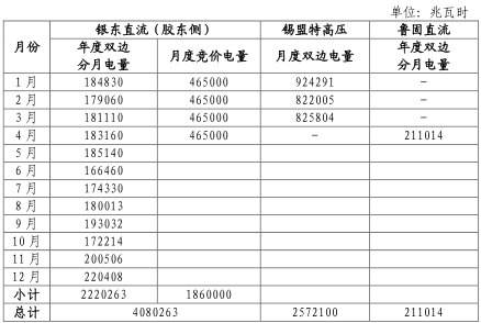 銀東直流 280 億千瓦時,華北聯(lián)絡(luò)線 223 億千瓦時,1000千伏錫盟-山東特高壓交流 100 億千瓦時,魯固直流 290 億千瓦時。