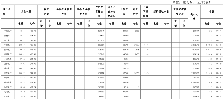 備注:2018 年一季度,對以下情況進行了清算退補:(1)2017 年 7-12 月直購電量,共計退補 -37432943.85 元;(2)2017 年自備替代電量,共計退補 -16160142.64 元;(3)2017 年泰山抽水蓄能電站低谷抽水電量,共計退補 60270824.46 元;(4)2017 年蓄熱電鍋爐、燃煤鍋爐替代電量,共