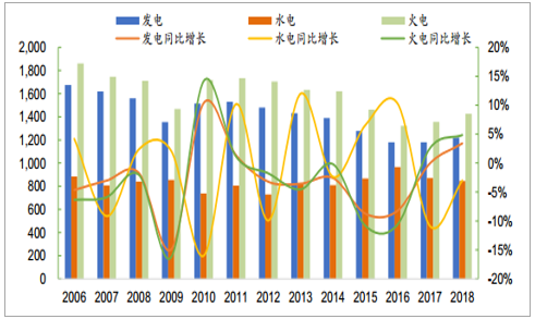 2018 年 1-4 月份,火電發(fā)電量 15951 億千瓦時(shí),同比增長 7.1%,增速比上年同期下降 0.1 個(gè)百分點(diǎn)。水、核、風(fēng)、 光發(fā)電量占全部的 23.6%,比重比去年同期提高 0.5 個(gè)百分點(diǎn)。其中,風(fēng)電發(fā)電增長 35.5%,增長強(qiáng)勁;核電增長 10.2%,因近期無新增并網(wǎng)發(fā)電機(jī)組,增速較近年平均水平有所放緩;由于來水情況不及預(yù)期,水電同比僅增 1.4%。
