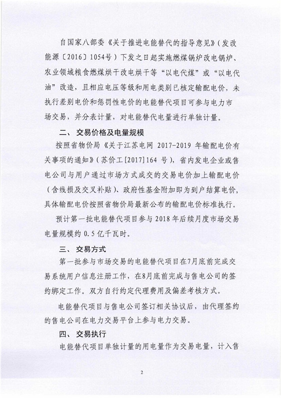第一批!2018年江蘇電能替代項目參與電力市場交易 規(guī)模約0.5億千瓦時