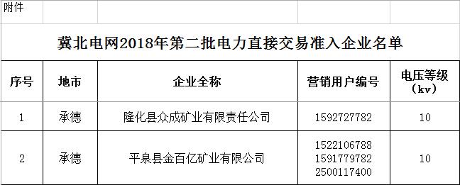 冀北電網(wǎng)補充公示2018年第二批電力直接交易準入企業(yè)名單