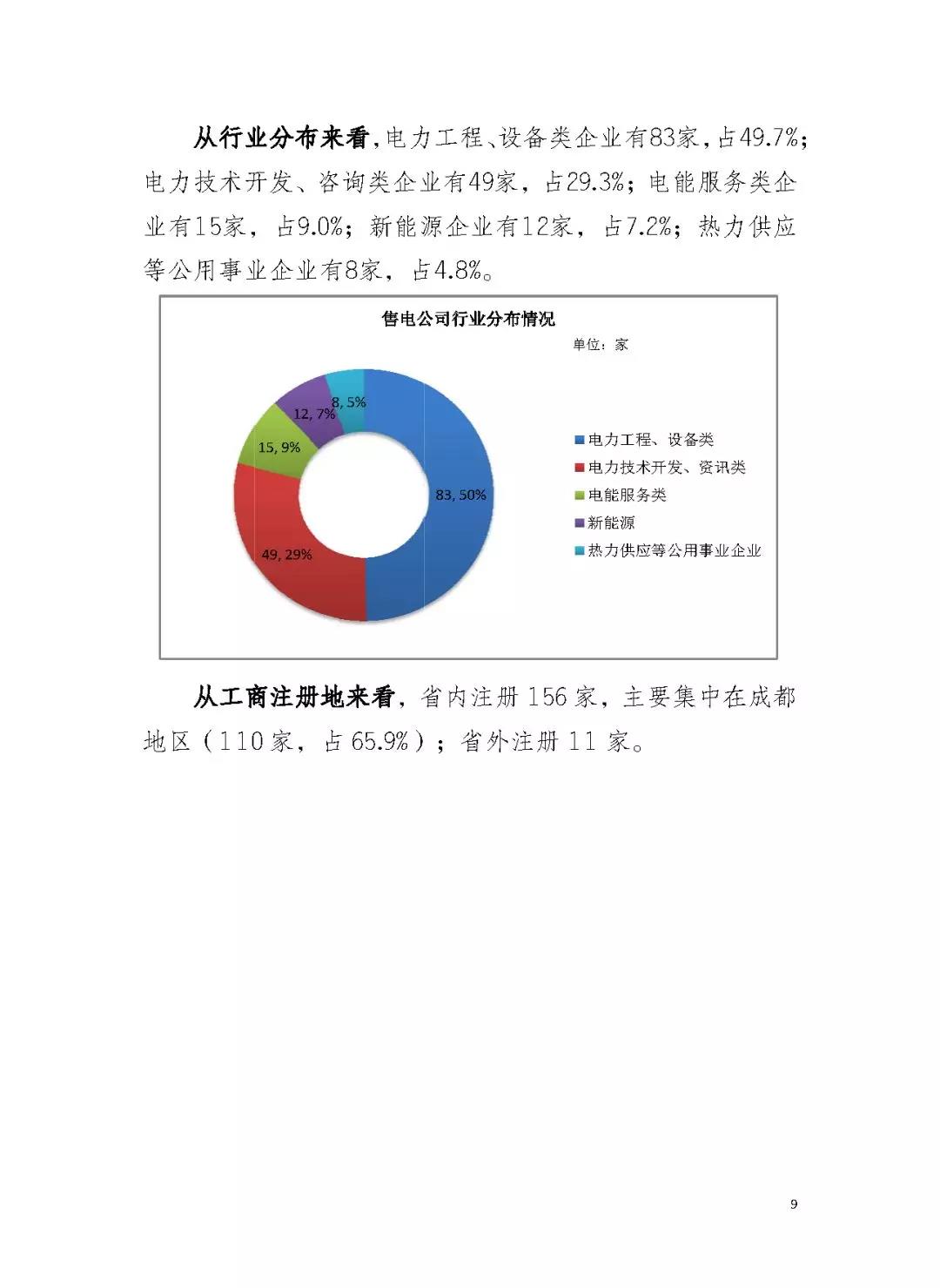 售電公司:截至6月底,四川電力交易中心注冊(cè)售電公司176家。其中,167家售電公司已注冊(cè)生效,9家正在批復(fù)流轉(zhuǎn)中。參與2018年市場(chǎng)交易的售電公司共58家,占注冊(cè)電力用戶總數(shù)的34.7%。