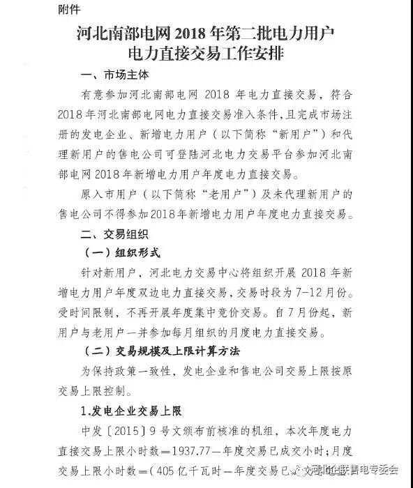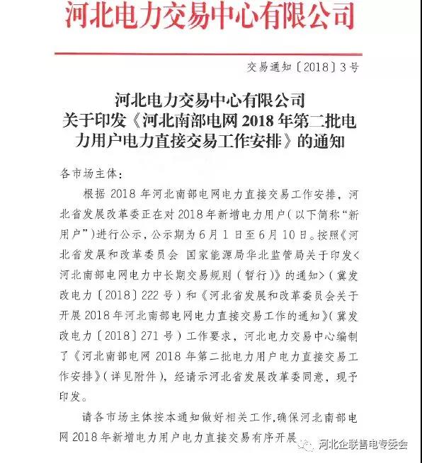 從河北企聯(lián)售電專委會獲悉,河北電力交易中心有限公司下發(fā)《河北南部電網(wǎng)2018年第二批電力用戶電力直接交易工作安排》的通知,針對新用戶,