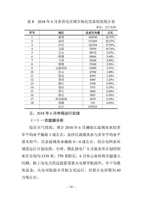 云南2018年6月電力交易月報:6月41家售電公司代理用戶參與交易