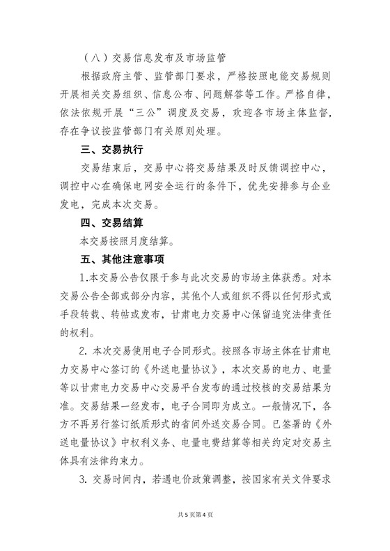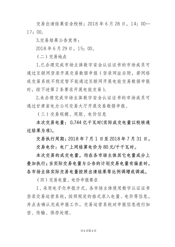 甘肅電力交易中心日前發(fā)布了《2018年7月甘肅外送陜西交易公告》,甘肅火電企業(yè)、新能源企業(yè)與陜西省間外送交易采用掛牌交易方式,本次火電