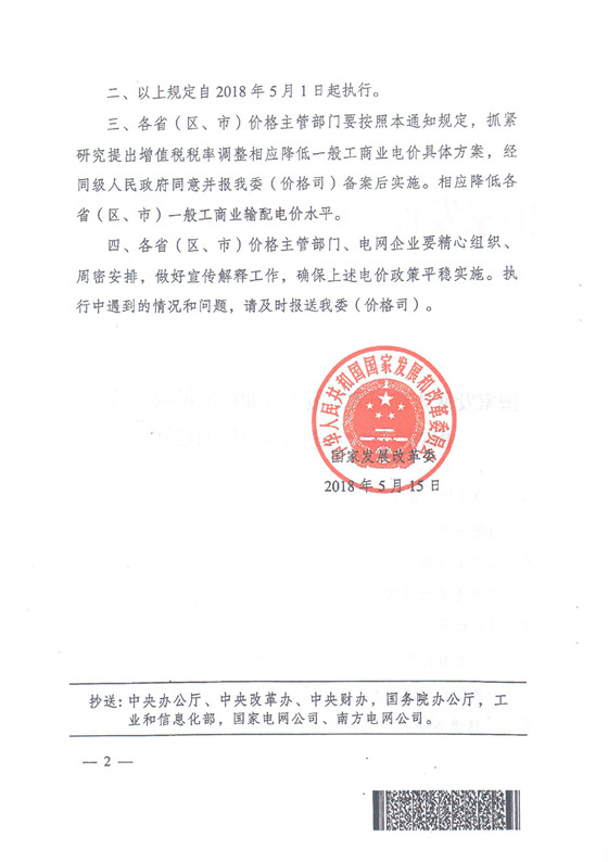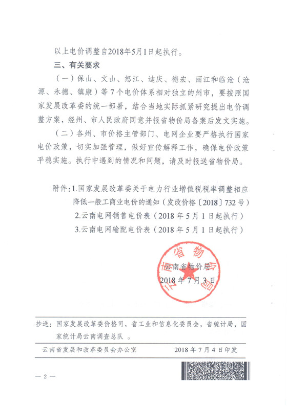 云南省物價局發(fā)布的《云南省物價局轉(zhuǎn)發(fā)國家發(fā)展改革委關(guān)于電力行業(yè)增值稅稅率調(diào)整相應(yīng)降低一般工商業(yè)電價文件的通知》文件,由于國家電力行