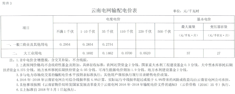 云南省再降電價:一般工商業(yè)目錄銷售電價和輸配電價降低1.25分/千瓦時