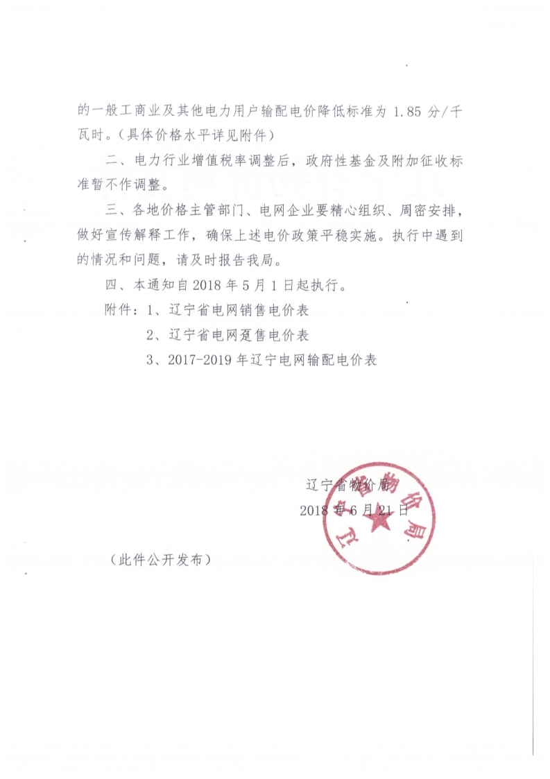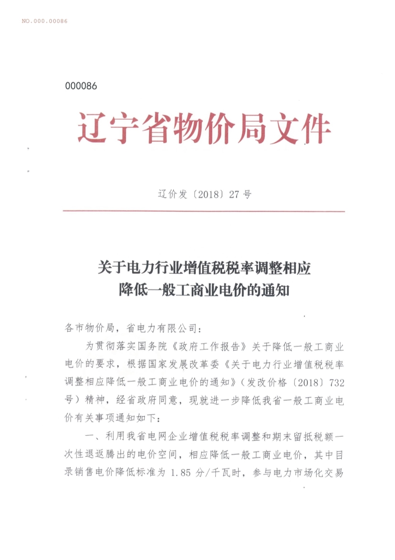 附件3:《關于電力行業(yè)增值稅稅率調整相應降低一般工商業(yè)電價的通知》(遼價發(fā)【2018】27號)